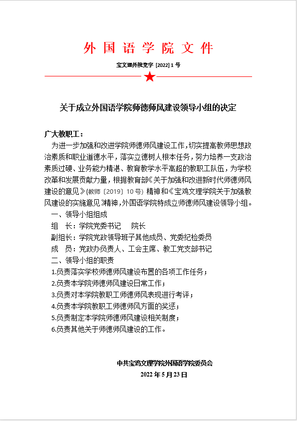 关于成立9728太阳集团师德师风建设领导小组的决定