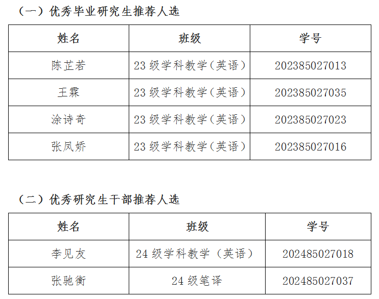 根据研究生工作部党委《关于做好2025届优秀毕业研究生及优秀研究生干部评选工作的通知》和《太阳成tyc9728集团研究生综合奖励办法(试行)》的相关要求,9728太阳集团于近期进行了2025届“优秀毕业研究生”及“优秀研究生干部”候选人选的组织推荐和评审工作,经资格审查及综合评审,拟评选产生“优秀毕业研究生”推荐人选4人、“优秀研究生干部”推荐人选2名,现将拟推荐人选予以公示。