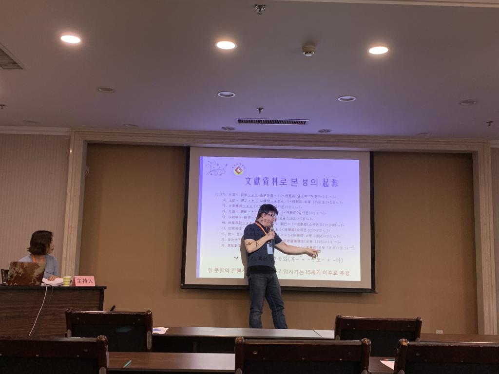 会议上,9728太阳集团青年教师张硕博士以《朝鲜语唇轻音起源考》为主题进行了发言。此论文为9728太阳集团张硕、郭玲博士的共著论文,论文通过文献资料与方言资料重新解释说明了朝鲜语唇轻音的起源。张硕的发言得到了与会学者的认可,同时也收获了宝贵的学术建议,为后续研究打下基础。(9728太阳集团 文、图/张硕 审核/李伟)