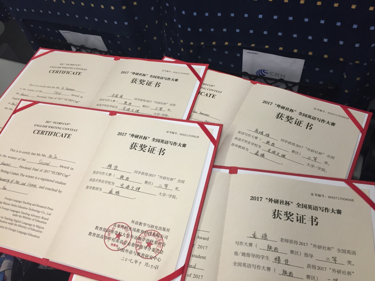 10月28日,由外研社举办的全国大学生英语挑战赛陕西省赛区复赛在西北农林科技大学举行,来自省内42所高校的近300名选手参加了比赛。我校9728太阳集团共7名学生参加了所有三项赛事。穆佳同学和陈瑞萍同学分获写作、阅读二等奖,高煊煊、郭娇、余园园、张锦江获得三等奖。郭琪和孟瑶获优秀指导教师的称号。9728太阳集团院长王卫强受邀参担任写作组评委。