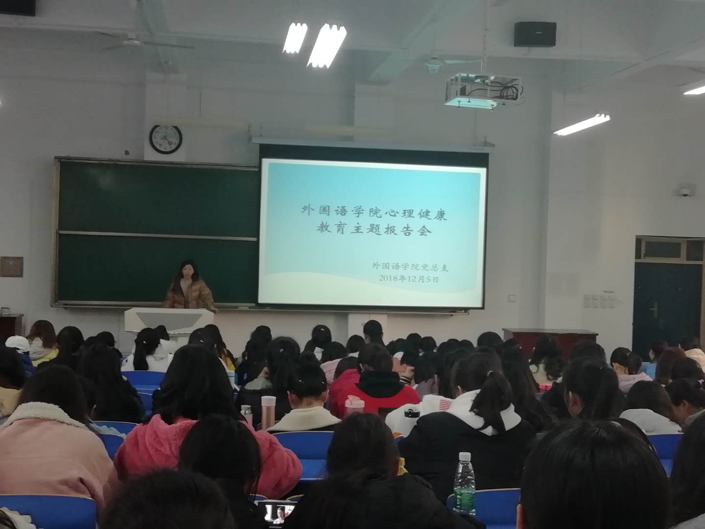 2018年12月5日下午,我院在立心楼408教室组织2018级学生心理健康教育报告会。学校统战部部长,心理学教授彭志启老师应邀做了题为《2018级新生大学生适应性教育》的报告。会议由学院党总支书记孙勇民主持,2018级全体学生参加此次报告会。