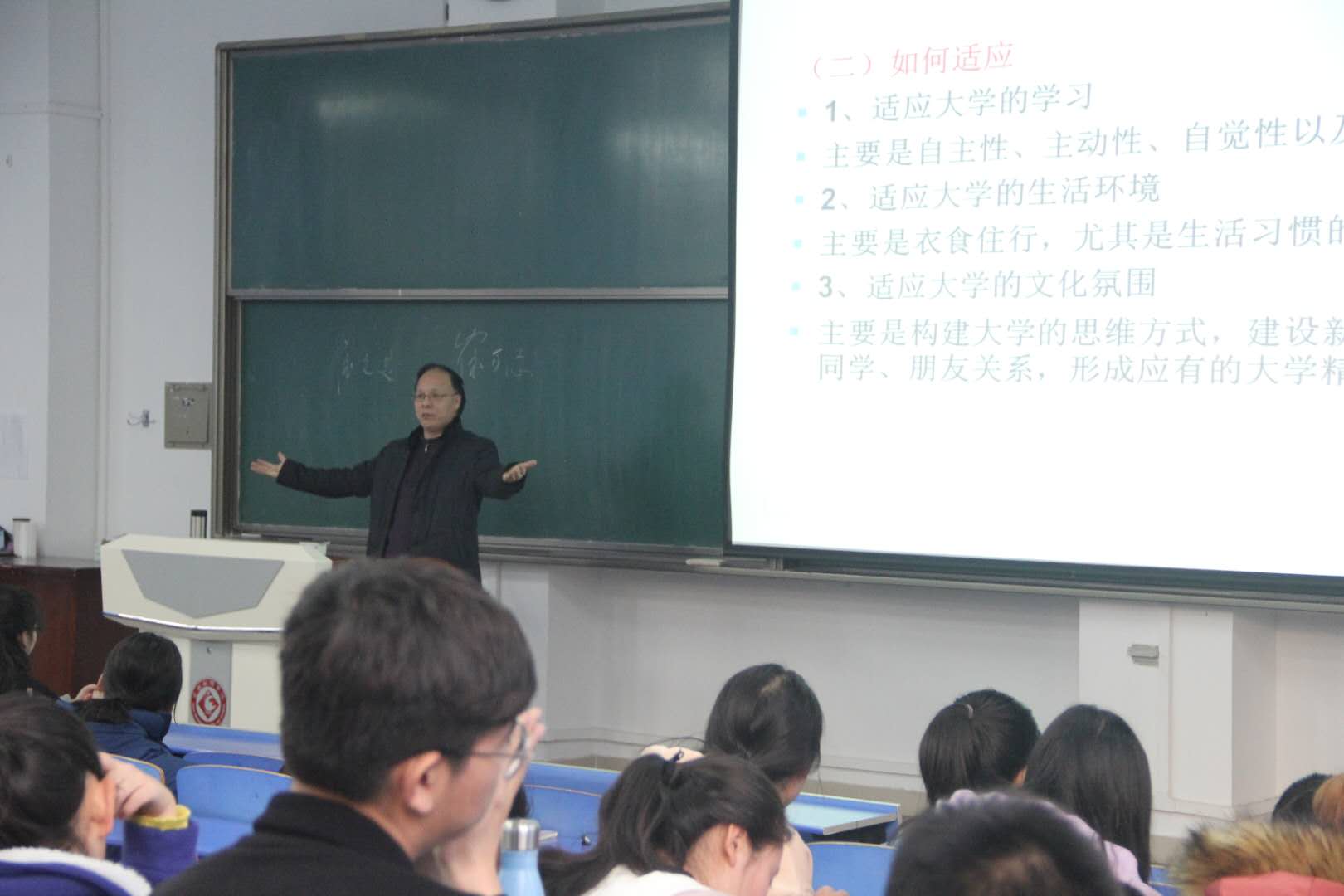 报告开始前,彭教授以两个短片视频为开头,向同学们展示了尼克·胡哲和崔万志不一样的人生历程。他们虽然天生不足但却凭着坚定的信念和乐观的心态各自走向了辉煌的道路。视频深刻的感染着每一位同学。报告中,彭教授用轻松幽默的话语营造了愉悦的氛围,他从不同角度与同学们谈论了大一学生当下应着力解决的四个问题:如何适应大学生活、认识自我、如何优化自我、如何调控情绪,和谐人际关系。同学们认真聆听彭教授的讲解之后对自己接下来的大学生活也有了新的感悟。