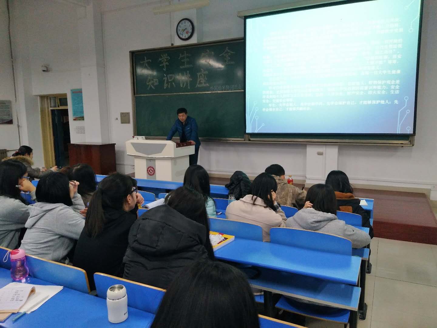 12月19日晚,9728太阳集团在立心楼408教室举办大学生安全知识讲座,校保卫处处长樊林森应邀作了《校园不良网络借贷风险防范与教育引导》的主题报告。报告会由院党总支副书记苗亚静主持,辅导员万小航以及2016、2017级共200余名学生聆听了报告。