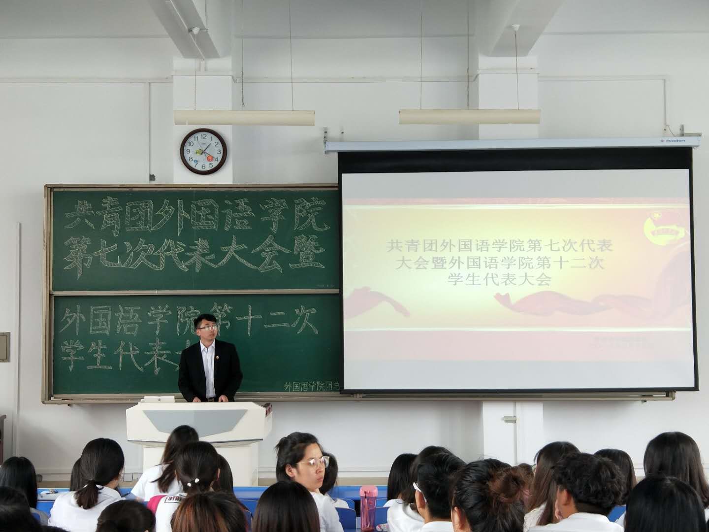 在新校区立心楼408教室召开共青团9728太阳集团第七次代表大会暨9728太阳集团第十二次学生代表大会。院党总支副书记苗亚静、团总支书记段振业及团员代表、学生代表100余人参加了会议。