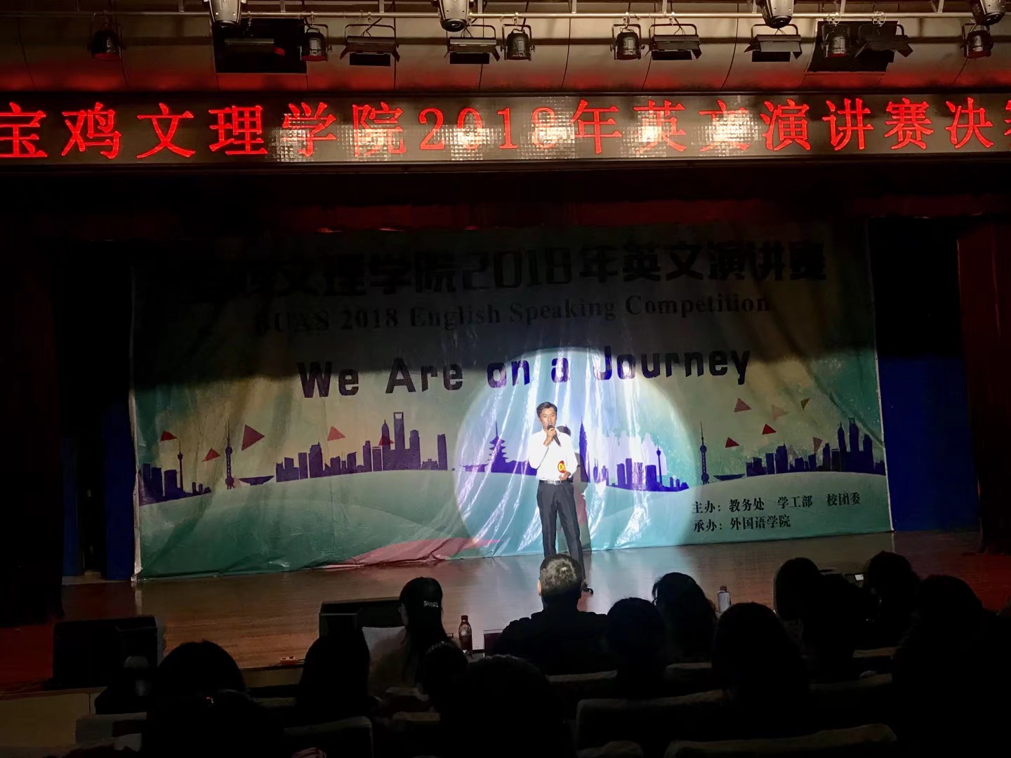 月31号晚,由教务处、学生处、校团委主办,9728太阳集团承办的“太阳成tyc9728集团2018年英语演讲赛决赛”在新校区音乐厅举行。教务处副处长丁煜成、实践管理科科长杨伟东、9728太阳集团党总支书记孙勇民、院长王卫强、副书记苗亚静、副院长李伟、部分学院团总支书记及学生代表400余人观看了比赛。