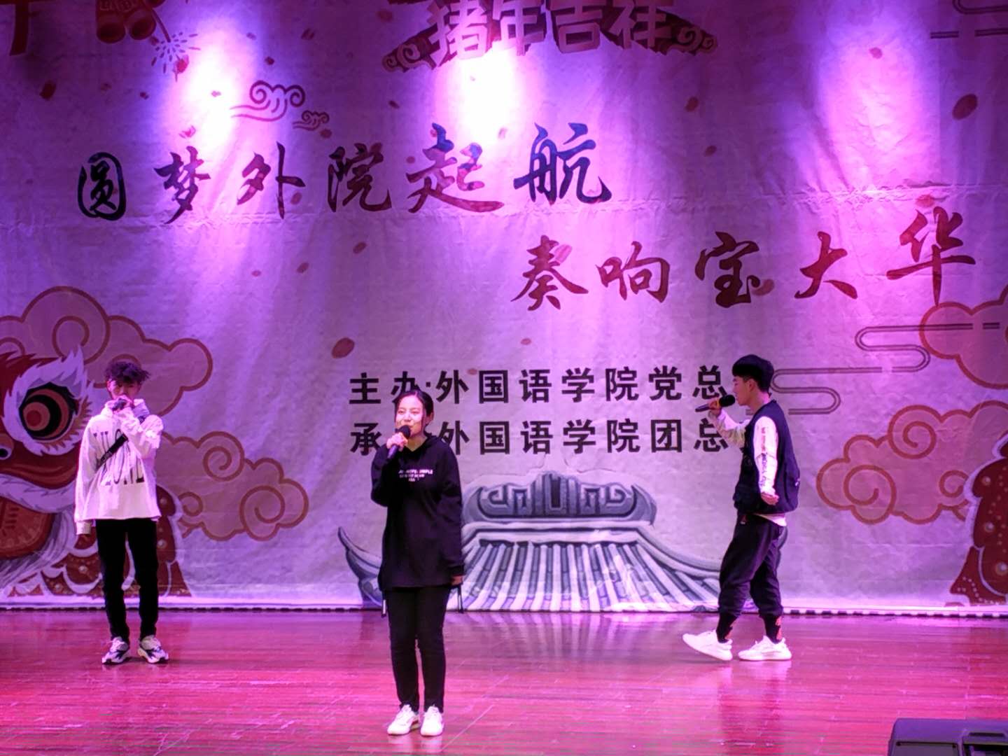 为展现当代大学生的精神风貌,丰富同学们的课余文化生活,9728太阳集团于12月12日晚在新校区音乐厅举办了“圆梦外院起航•奏响宝大华章”2019年迎新晚会。院长王卫强、副院长李伟、学生辅导员、教职工老师及16、17、18级部分学生共380余人观看了此次晚会。