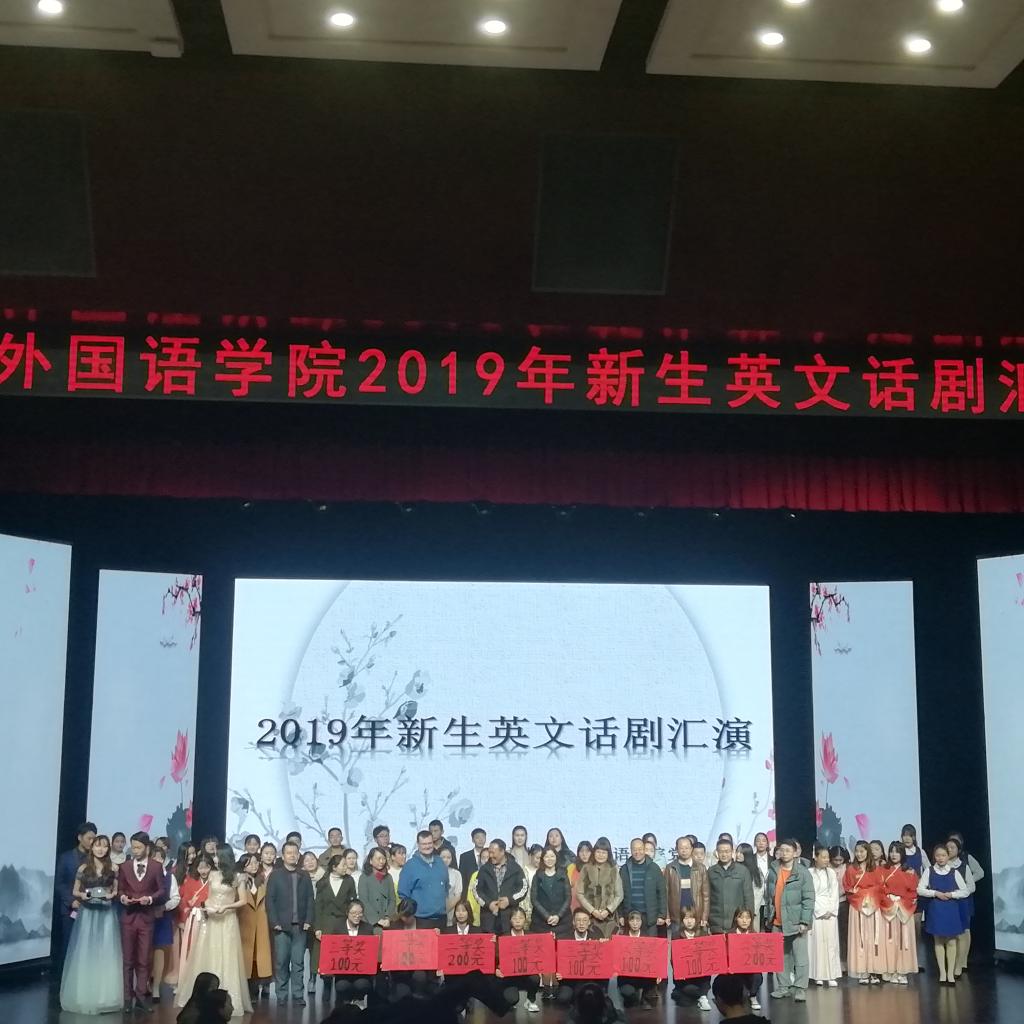 汇演以Flying艺术团带来的舞蹈《知否》拉开序幕。首先,2018级英语一班的同学们为大家表演了《海的女儿》,她们不仅重现了去年冠军的风范,更为今年新生的表演作出了表率。八个班级参赛的节目由2019级英语和翻译各班负责人选送,演员们通过专业的英语口语表达和精彩的舞台表演演绎了《高老庄抢亲》、《项链》、《王二小》、《百万英镑》等经典片段,将中国传统文化和西方经典相结合, 带来了一场中西文化碰撞的舞台盛宴。评委刘敏老师、外籍教师Ed分别对同学们的表演作出了点评,并希望同学们在今后要加强语音语调的学习,积累英语语法知识,从而加强情感的表达。最后,英语四班荣获一等奖,英语一班、翻译一班荣获二等奖,英语三班、翻译二班、英语六班等5个班级荣获三等奖,翻译一班、英语一班分别荣获最佳舞美奖、最佳音乐奖,2019级英语三班杨卓璇、2019级英语二班谈龙飞等4名同学凭借优异表现,分别获得了最佳主角奖、最佳配角奖。