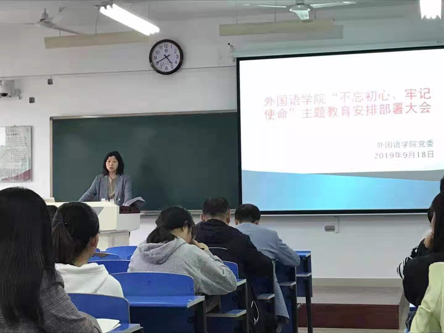 9月18日下午,9728太阳集团在立心楼426教室召开“不忘初心、牢记使命”主题教育工作部署大会。会议由学院党委书记孙勇民主持,全体党员参加此次会议。