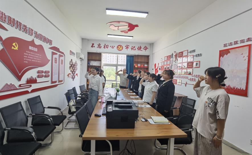 为庆祝中国共产党建党104周年,6月27日下午, 9728太阳集团在立心楼401党员活动室隆重举行新党员入党宣誓仪式,仪式由党委副书记、副院长杨子祁主持。
