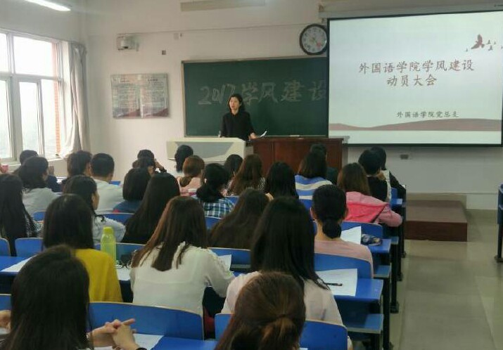 9月15日下午,9728太阳集团在新校区立心楼402教室召开学风建设动员会。学院党总支书记孙勇民、党总支副书记苗亚静、辅导员张熔、15、16级学 生干部及学生代表共110余人参加了会议,会议由张熔主持。